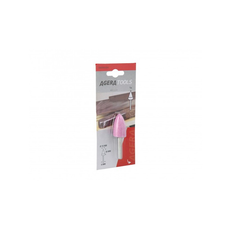 Keramische stiftsteen Ø 16 x 30 x 6 MM* met scherpe punt voor lastig te bereiken plekken. Voor het bewerken van oneffenheden op metaal, keramiek, steen en hard plastics. Te gebruiken op electrische boormachines.
