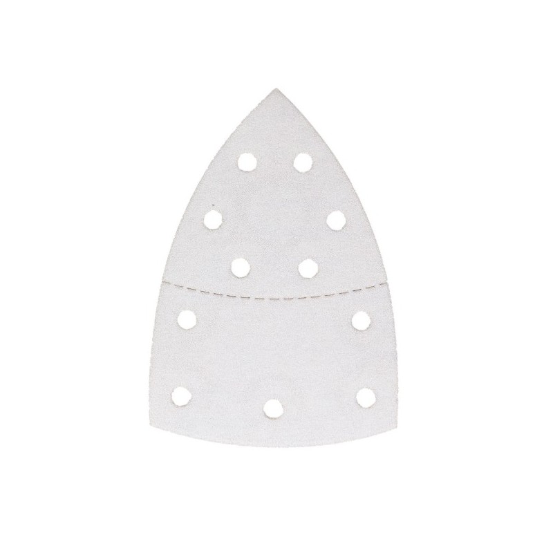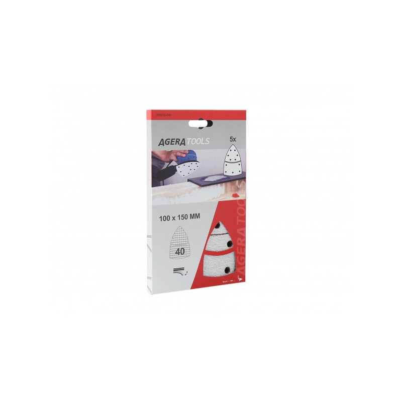 Aluminiumoxide schuurdelta 100x150 MM met anti-volloop bestrooiing, klittenband. Korrel P80. Met 6+5 gaten. Wordt gebruikt voor het finishen van diverse metalen, hout, plamuur, primers en het verwijderen van verflagen.