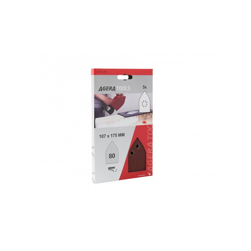 Aluminiumoxide schuurdelta 107 x 175 MM op papieren drager met klittenband. Korrel P120. Met 8 gaten. Wordt gebruikt voor het finishen van diverse metalen, hout, plamuur, primers en het verwijderen van verflagen.